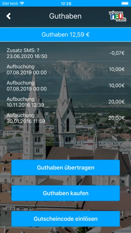 - Guthaben aufladen (Gutscheincode, Kreditkarte, SEPA)