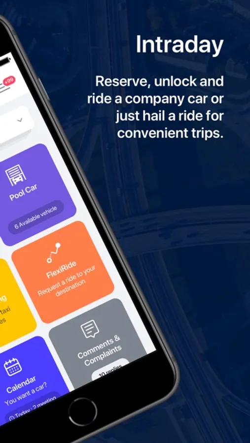 ● Reserve, unlock and drive a company or campus pool car with flexiCar.