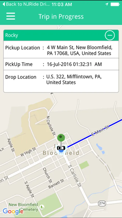 In return you would receive the notification and can check the current location of the NJRide and the estimated time to reach your pickup location.