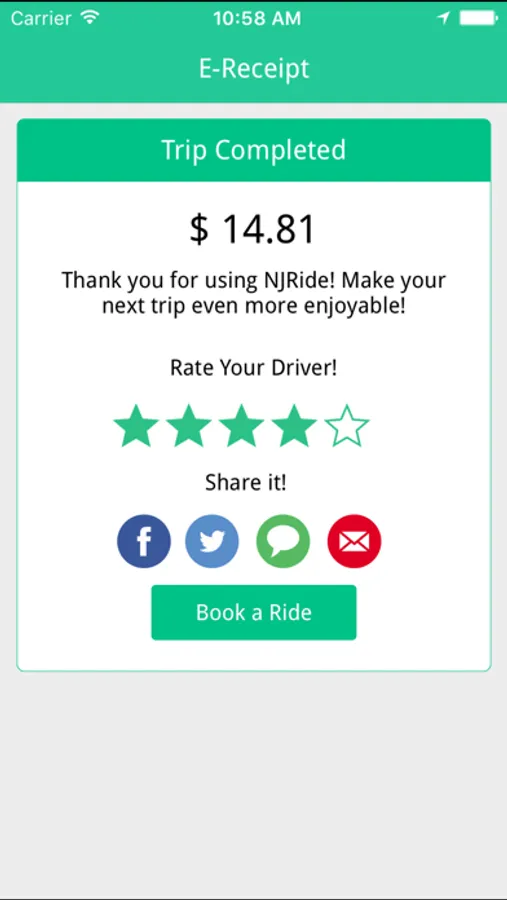 At the end of your journey, you will receive the receipt of your fare in your Email.