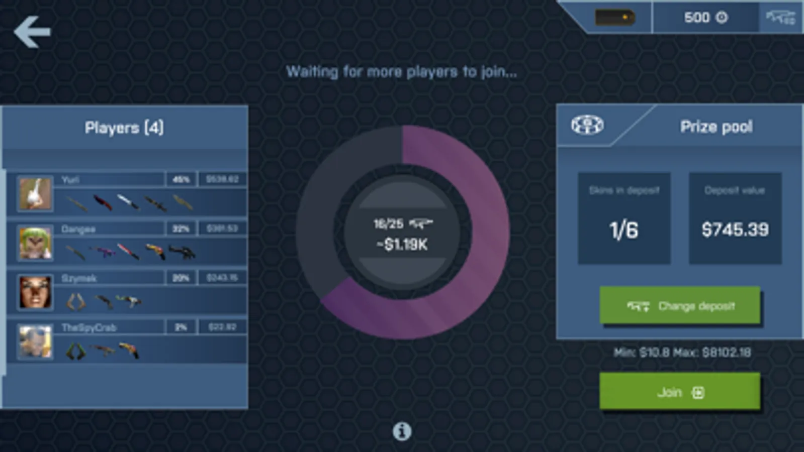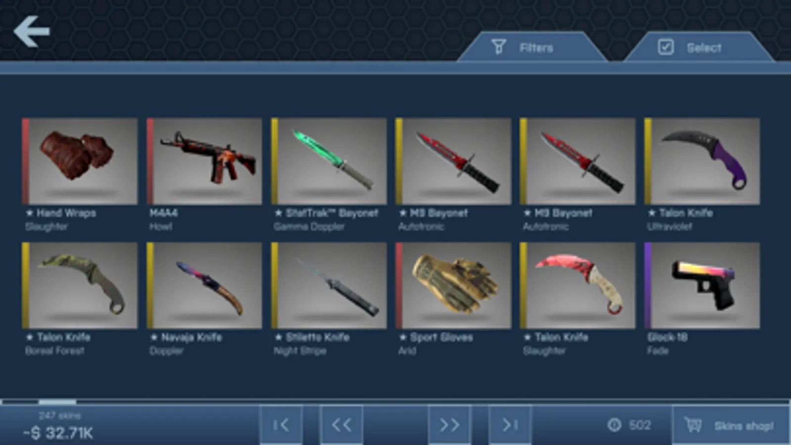- Skin inventory