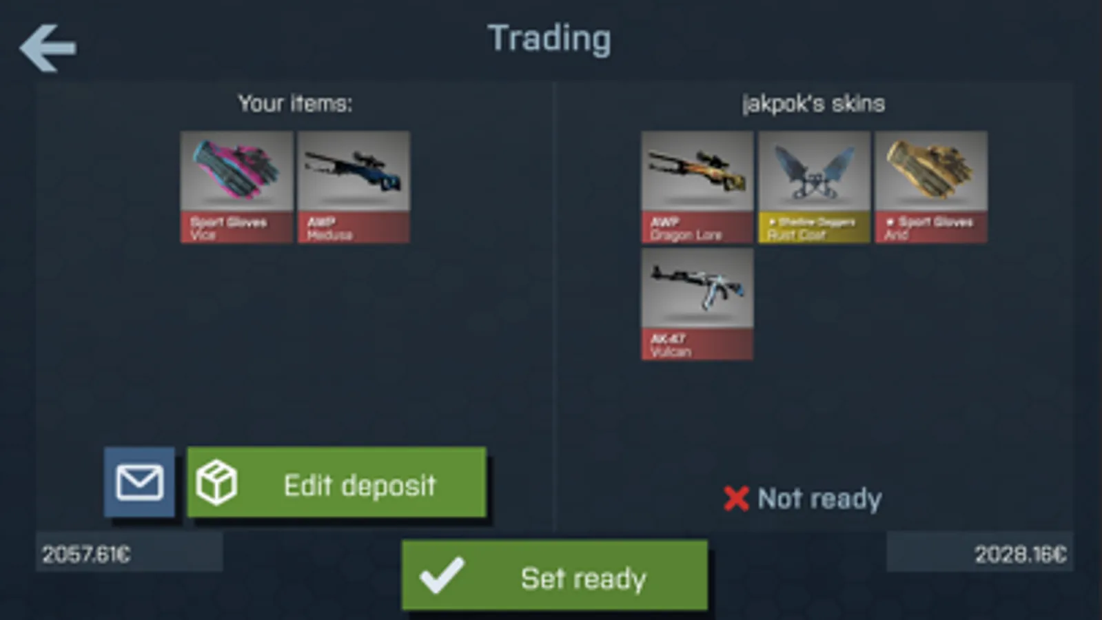 - Trades - exchange your skins with other players