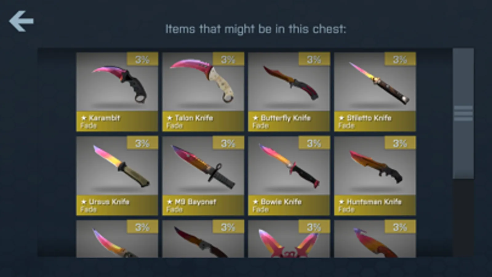 - Design and drop chances similar to CSGO