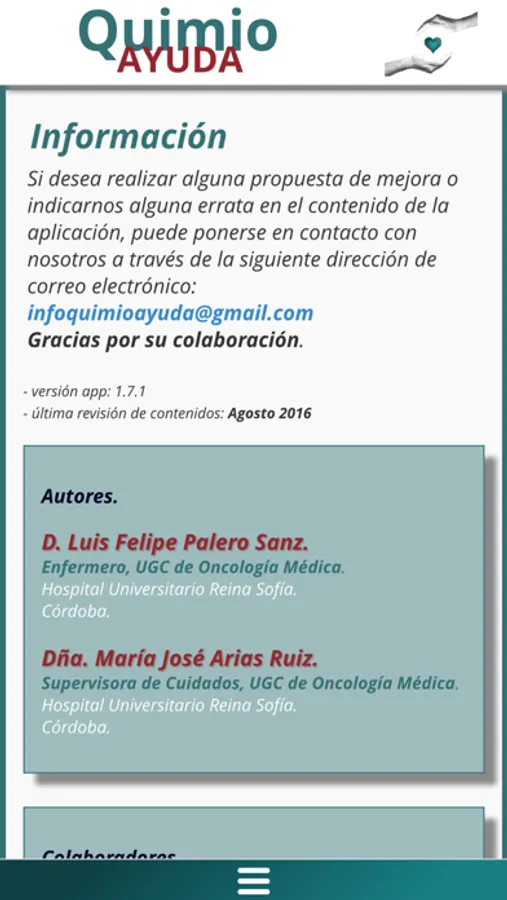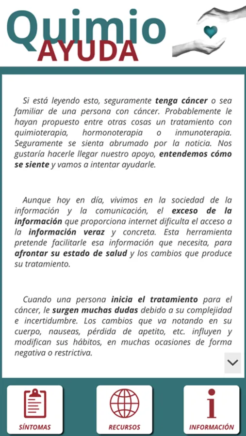 El objetivo de QuimioAyuda es que se sientan más tranquilos y ayudarles a mejorar su calidad de vida durante la quimioterapia, controlando sus efectos secundarios en su entorno social y familiar.