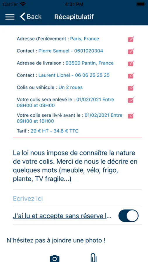 • Une moto à faire livrer à Paris ce jour au départ de Marseille