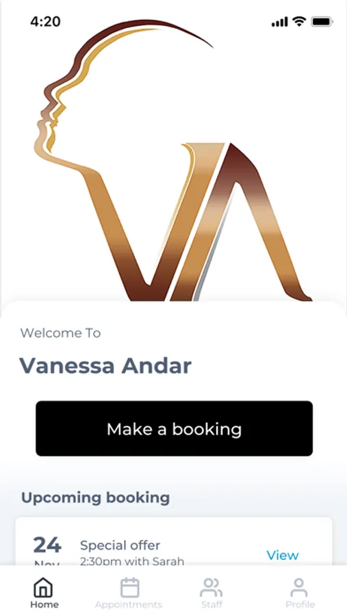 The Vanessa Andar app makes booking your appointments and managing your loyalty points even easier. You're just a few taps away from feeling good and looking great!