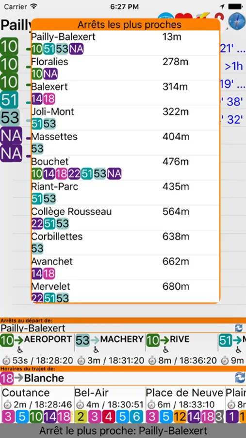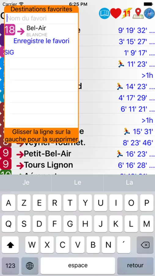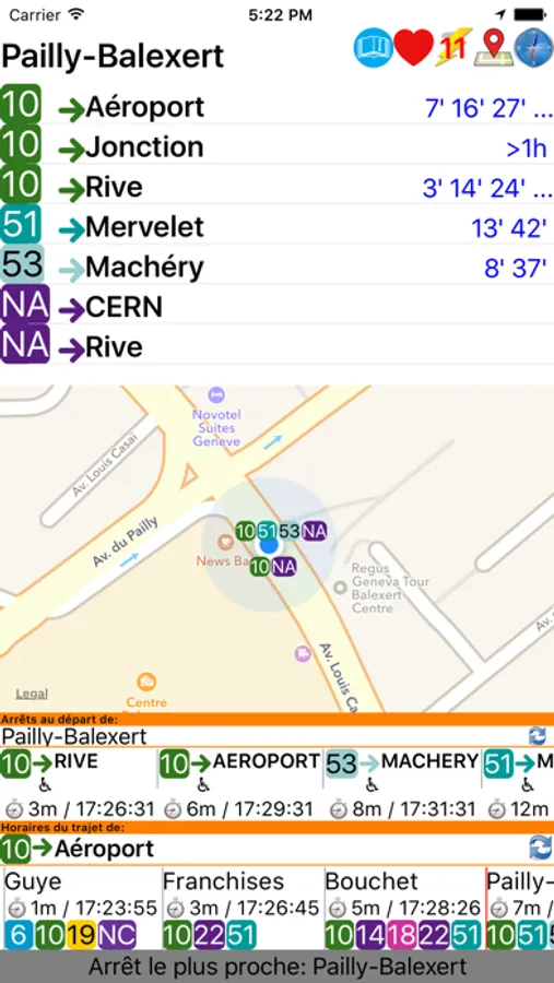 Si vous choisissez des destinations favorite vous voyez immédiatement à quelle heure vous allez y arriver.