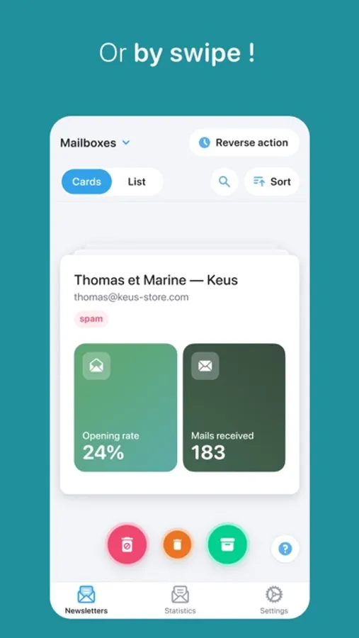 Cleanfox allows you to display your newsletters based on your rate of opening them and the number of emails received. Then you can: