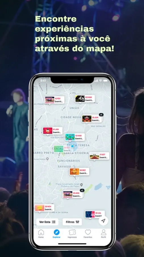 Ative sua localização e descubra no "Mapa" os eventos que irão acontecer mais perto de você. Explore os melhores eventos na sua cidade, seja ela São Paulo, Rio de Janeiro, Belo Horizonte ou Salvador... Não importa onde você esteja, filtre a busca com base na sua localização e não perca nada!