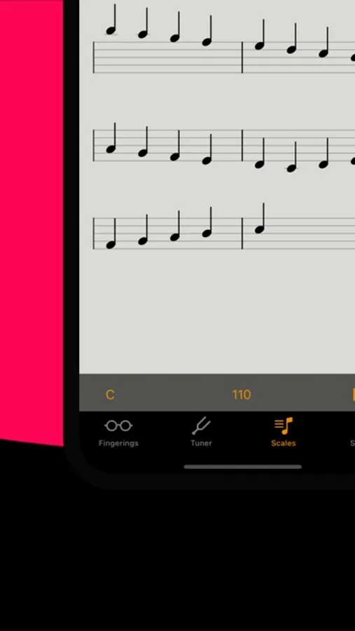 You can also find the fingerings that you have forgotten! Select the notes you want to play and they appear.