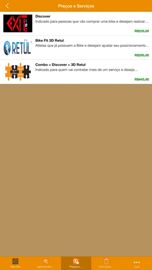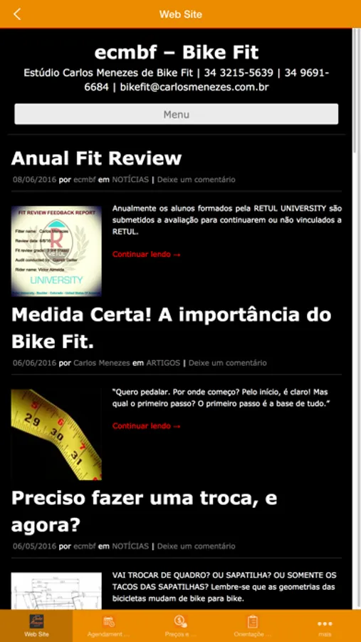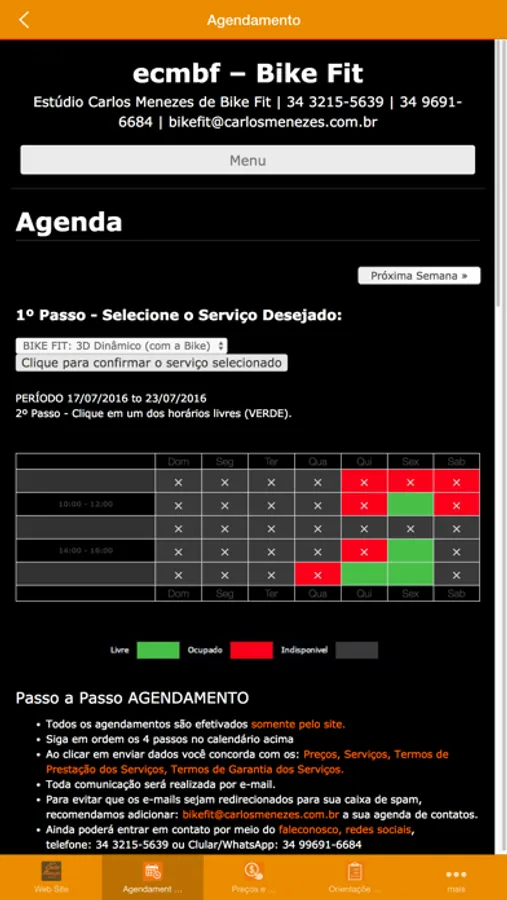 O aplicativo ainda permite, agendar uma avaliacao de posicionamento no ecmbf - Estudio Carlos Menezes de Bike Fit (www.carlosmenezes.com.br)