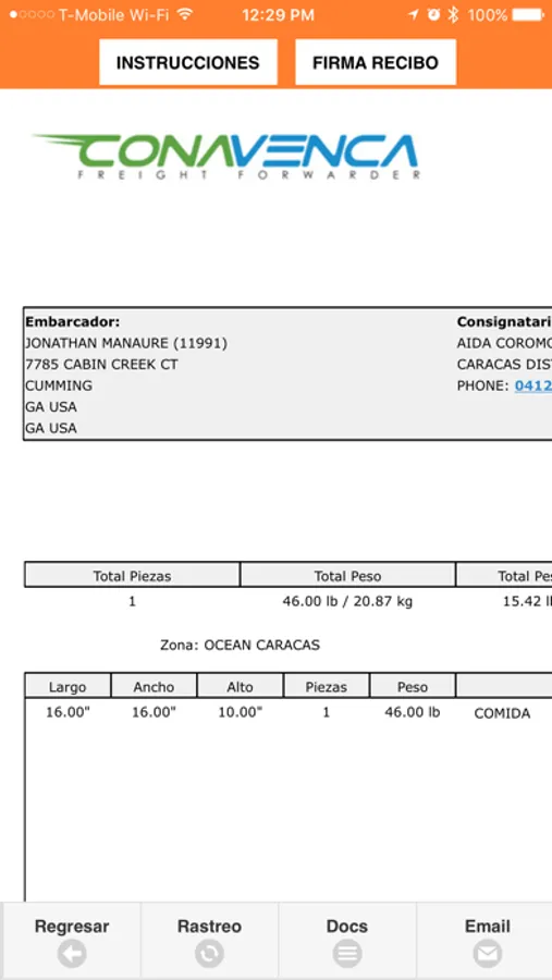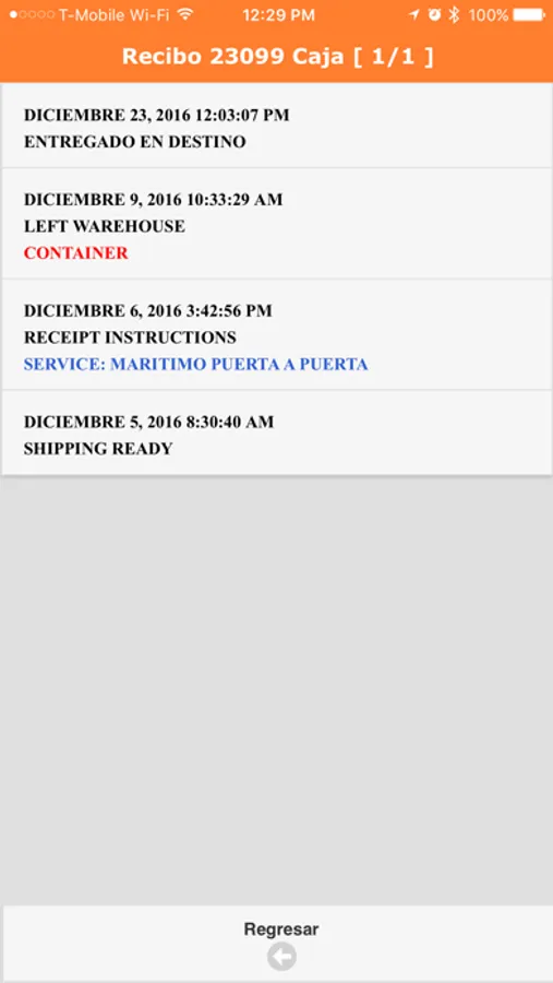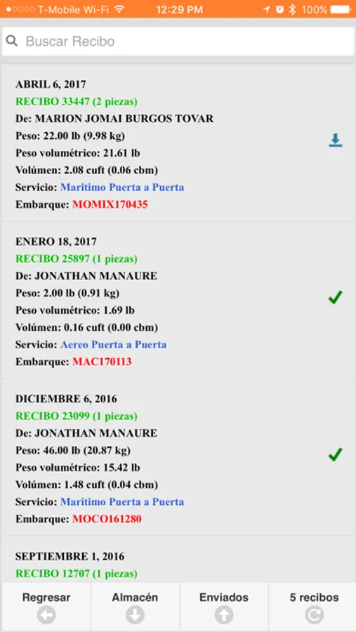 * Búsqueda de Recibos por Número de Recibo y/o Rastreo (Tracking).