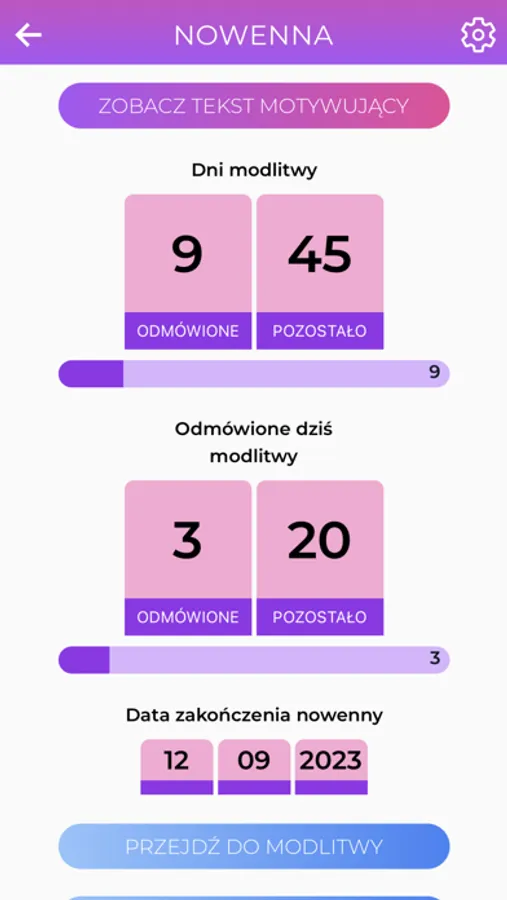 • możesz otrzymywać powiadomienia o zbliżających się nowennach,