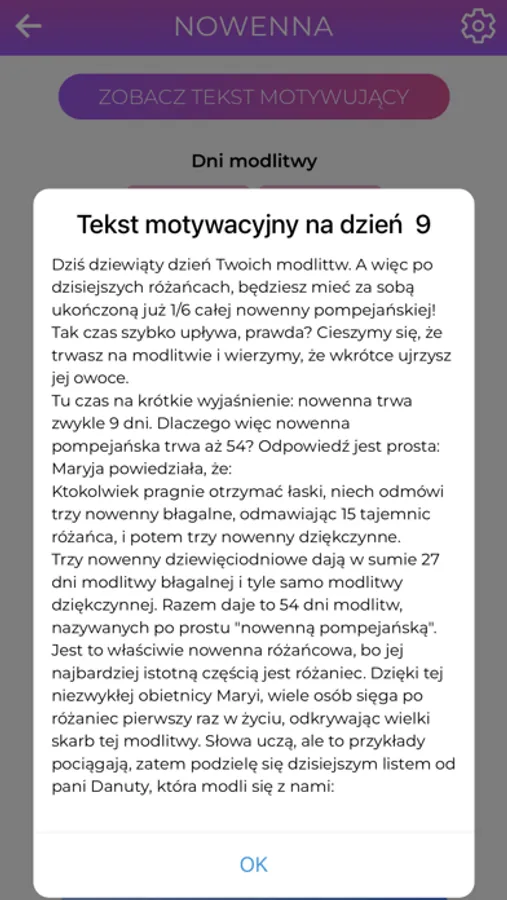 • aplikacja zadba, aby nie przeoczyć żadnego dnia nowenny,