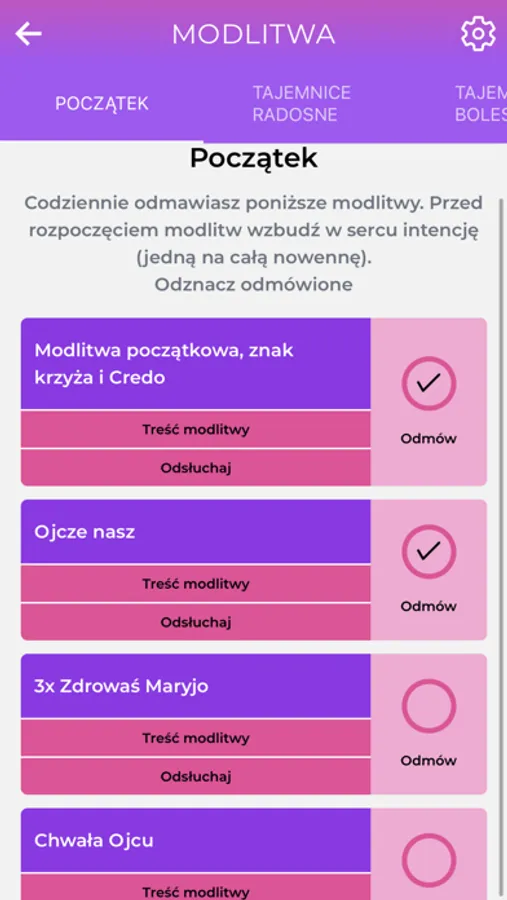 • jeśli nie wiesz, jak modlić się nowenną pompejańską i różańcem, to aplikacja Ci w tym pomoże w serii instrukcji,