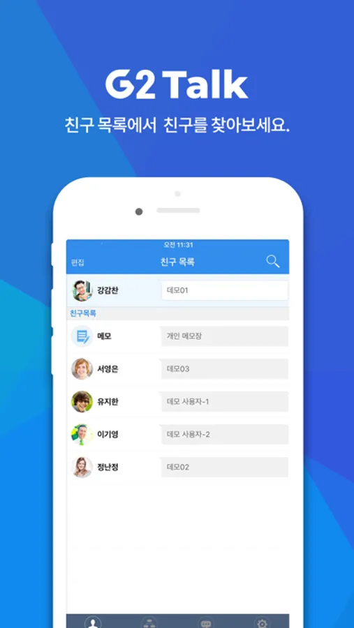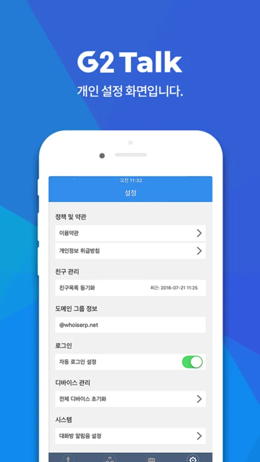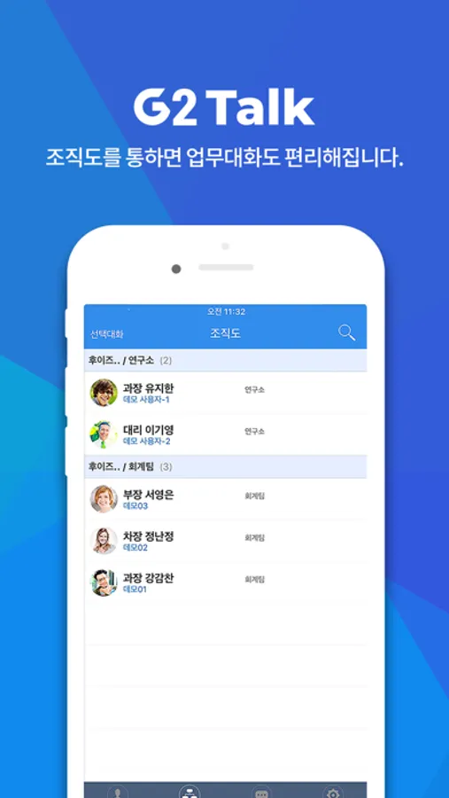 그룹웨어와 연계된 조직도 목록 제공. 계정 당 복수개의 디바이스 지원
