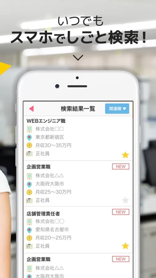 *本アプリの使用にはインターネットに接続されている必要があります。オフライン状態で求人情報の検索および閲覧は行えません。