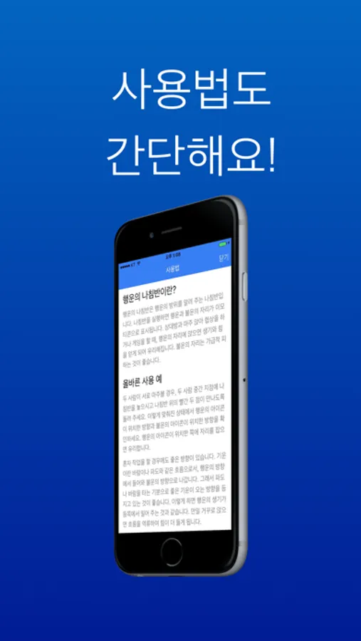 행운의 나침반은 행운의 방위를 알려 주는 나침반입니다. 나침반을 실행하면 행운과 불운의 방향이 이모티콘으로 표시됩니다.
