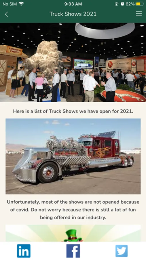 Find Travel Centers and Truck Shows that have entertainment offered to drivers this year. See if any truck company’s or manufacturers are having a” Give A Way” or a “Contest” event you want to go or try to win. See who offers great “Health” and “Wellness” programs to their drivers. Fill out a questionnaire on the points of interest in our industry covering Truck Shows, Travel Centers, Truck Companies, and Manufacturers. Follow our 2021 Over the Road tour.