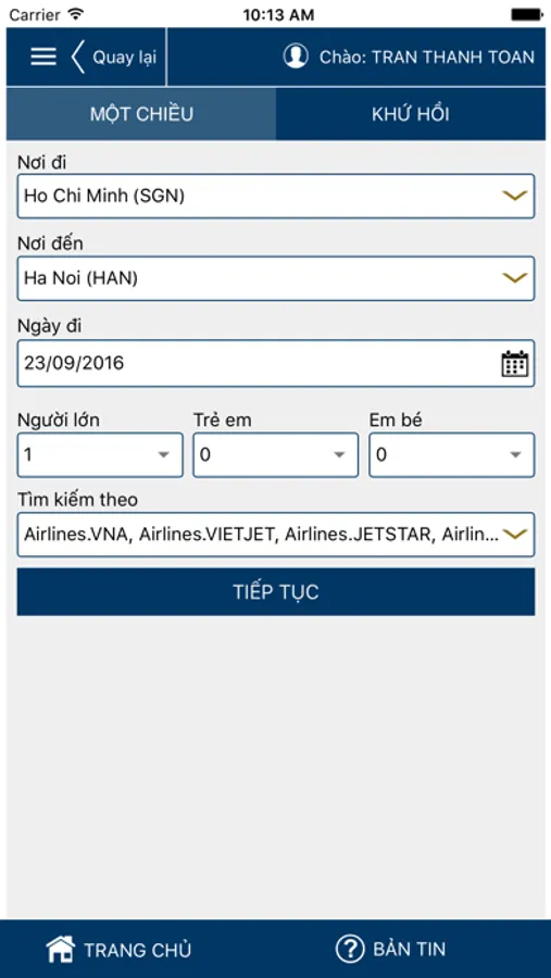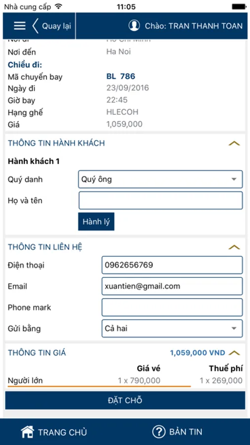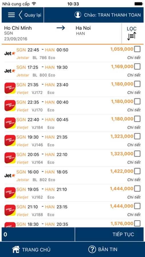 Hệ thống có thể book xuất vé máy bay giá rẻ khuyến mãi.