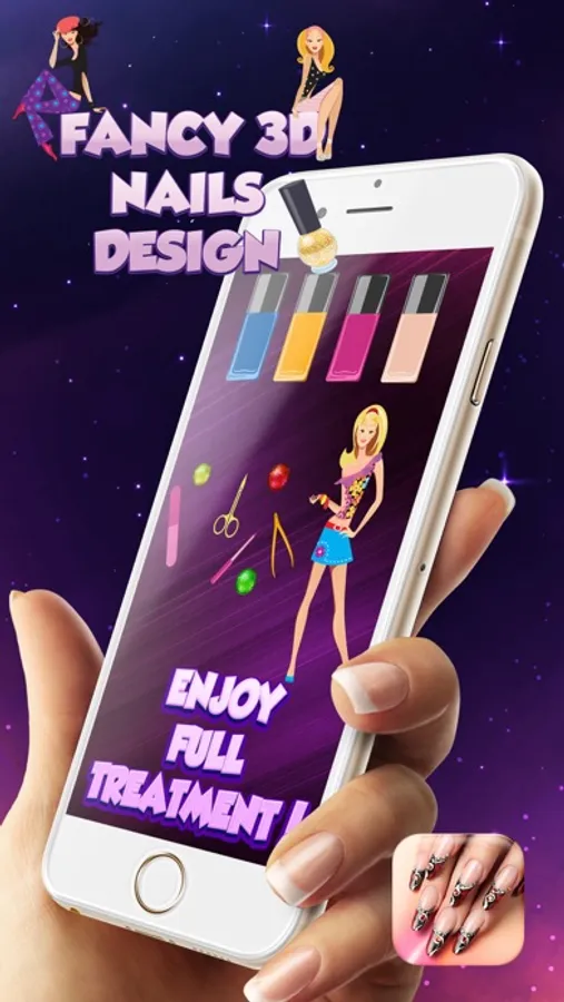 Visit the most popular virtual beauty salon and enjoy full spa treatment with incredible new Fancy 3D Nails Design! Choose among beautiful neon, metallic or matte colors and decorate your cute nails with sparkly stickers and rhinestone! This is The Best DIY Manicure Game for Girl's Beauty Makeover that offers you so many options!