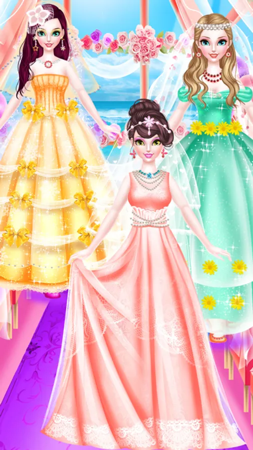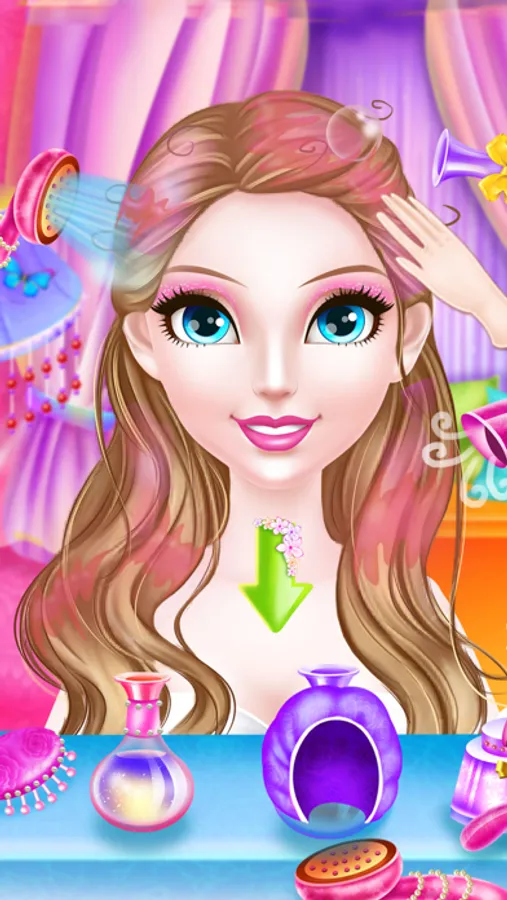 This beautiful princess will hold her excellent wedding today. Come to help her dress up and let her become the most charming bride. Firstly, you need to help the princess wash her hair with shampoo. Then put some hair conditioner on her hair and let her put on one hat for a moment. After that wash her hair again and use the hair drier to make her hair dry. Don’t forget to use the comb to make her hair smooth and nice. Secondly, you need to help the princess wash her face skin with facial cleanser and then put one mask on her face and eyes to make her skin look fresh. Next stage, you can try your best to make up for the princess. We have prepared all the cosmetics for you and you can choose the suitable eye shadows, eye brows and cheek colors for her. Make some perfume at last for her. Thirdly, you need to dress up the princess with our given gorgeous wedding dresses and accessories to make her look as beautiful as you can. At last let the princess hold wedding with prince happily.