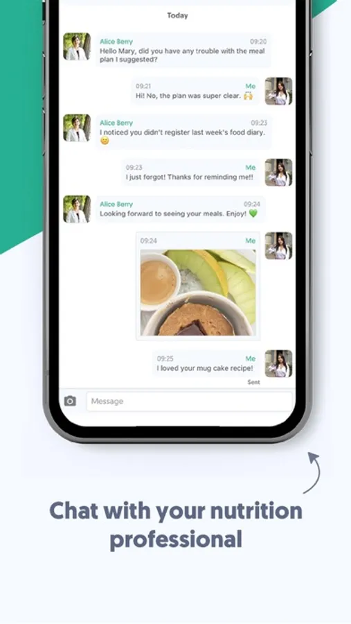 * Messages: whenever you have questions, you can send your nutrition professional a message or even a photo.