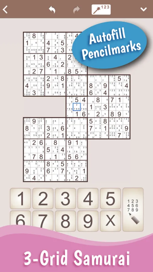 Play four different Samurai Sudoku variations in a single app! Start with the easier 2-Grid puzzles and advance all the way to the huge challenging 5-Grid puzzles, also known as Samurai Sudoku. Each variant has a different overlapping grid configuration and provides a unique twist of brain challenging logic.