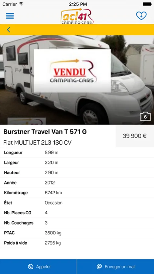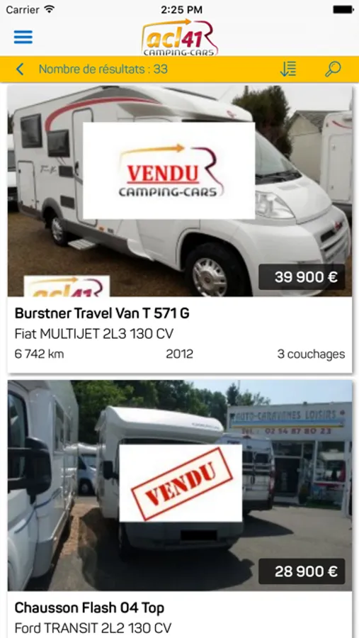 Grace à l’application ACL 41 vous pourrez consulter toutes les annonces de camping-cars, caravanes ou mobil-homes neufs et d’occasion. Vous pourrez sauvegarder vos annonces préférées dans vos Favoris. Grâce à un moteur de recherche intuitif, vous trouverez facilement le véhicule de loisir que vous cherchez. Vous pouvez aussi déposer une recherche personnalisée depuis cette application pour trouver le véhicule de vos rêves sans recherche ni effort grâce au système de recherche inversée !