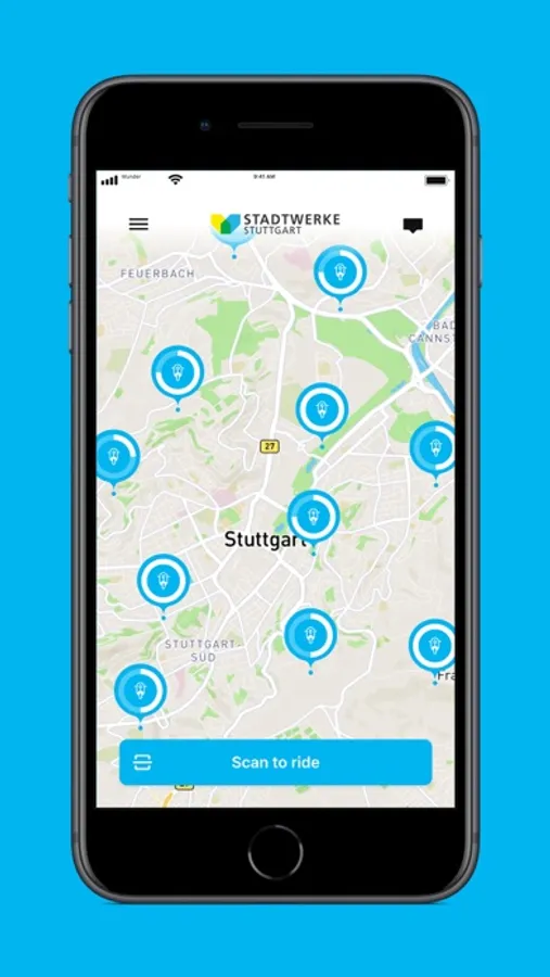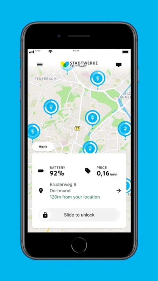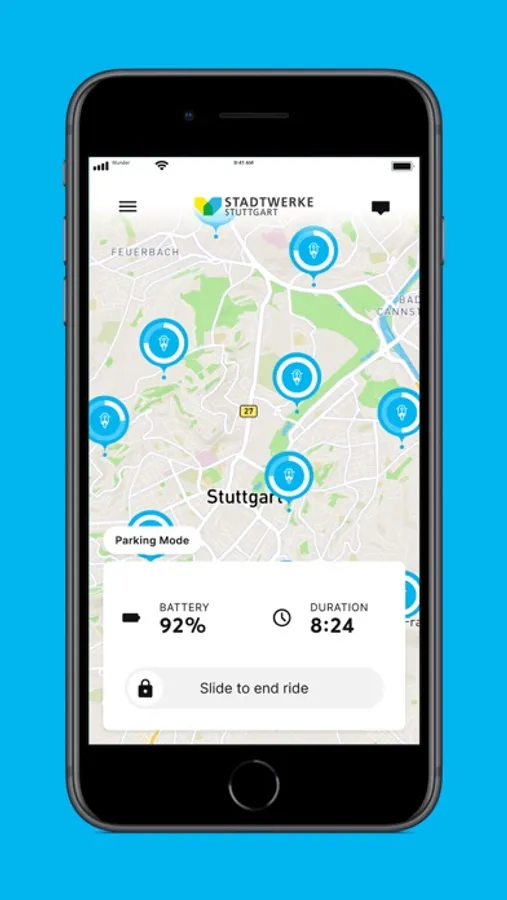 Die stella-App ermöglicht die Lokalisierung, Reservierung und Anmietung der E-Roller. Durch die App bekommst du Zugang zur Helmbox, in der sich zwei Helme in zwei Größen (mit Hygienehauben) befinden.