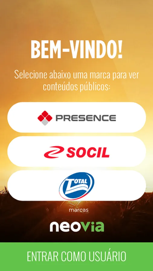 Aplicativo multifuncional para as marcas Presence, Socil e Total Alimentos do grupo Neovia Nutrição e Saude Animal, contemplando funções de cálculo e simulador de dietas, materiais promocionais, prova de resultados e dúvidas frequentes. Aplicativo para equipe interna e publico em geral.