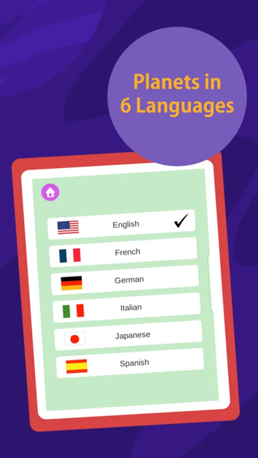 - The planets are named in six (6) languages: English, French, German, Italian, Japanese and Spanish. This allows the kid to learn over 30 foreign words, which will be very useful for the further study of the languages. Each word is pronounced clearly and distinctly along with how to spell them.