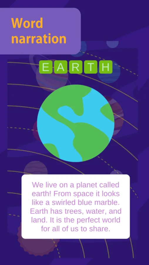 - Your child is taught how to form words by reading out letters one by one. When the name of the planet is formed they are spelt and read for your child.