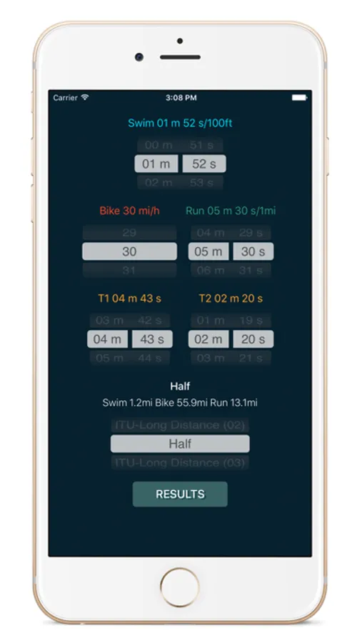 Using SBR Triathlon Calculator is very simple: on the home screen you set the time for the triathlon, and you can see your results on the summary screen.