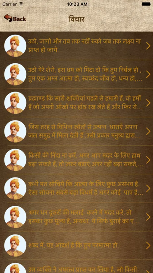 Swami Vivekananda Quotes In Hindi App Provides you the quotes from Swami Vivekananda,it will aware you with some amazing fact of Swami Vivekananda and the life style of him.