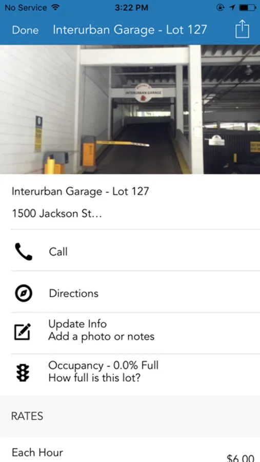 • Rates: See rates calculated on the map just for you, as well as detailed rate cards for thousands of parking facilities.