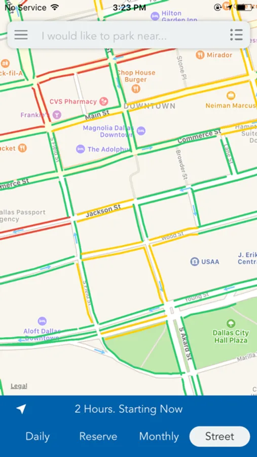 The Dallas Parking app shows how much you should expect to pay for parking before you arrive. With prices laid out on the map, you can easily compare parking options.