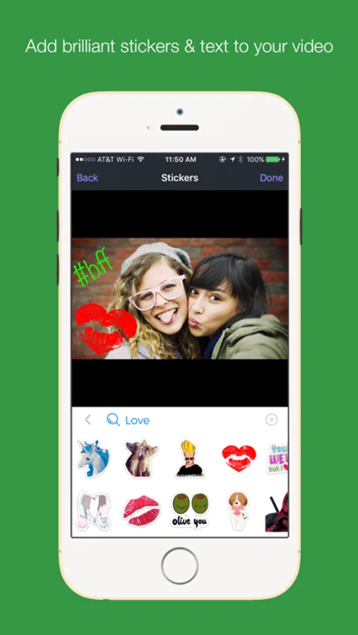 • Add Stickers - Choose from a huge library of animated stickers to add to your videos.