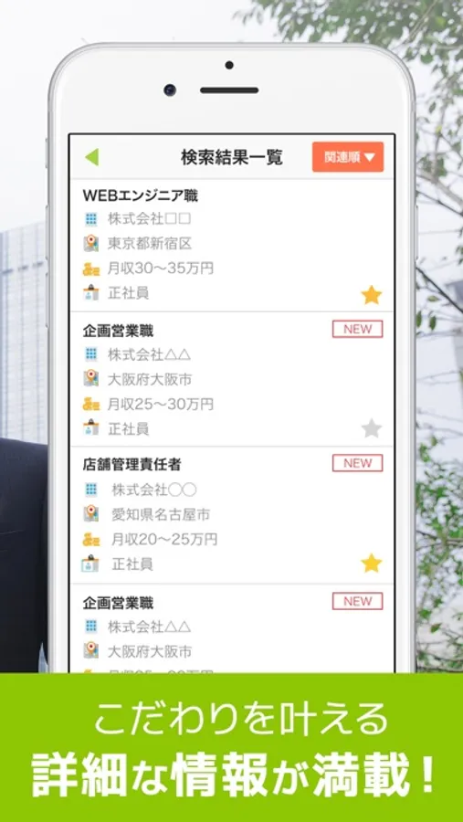 *本アプリの使用にはインターネットに接続されている必要があります。オフライン状態で求人情報の検索および閲覧は行えません。