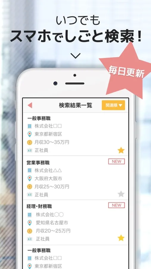 事務の仕事探しを応援する求人検索アプリ