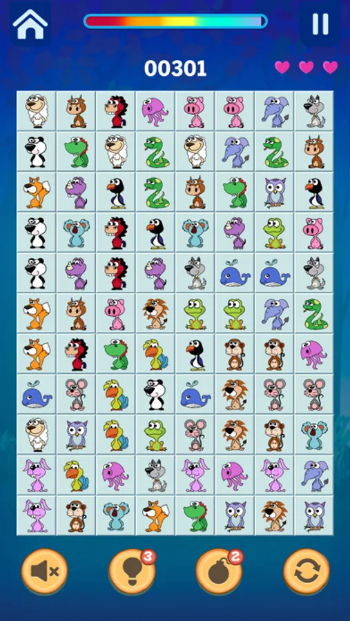+ You have to find two identical icon tiles that can be connected with up to 3 straight lines where there is no other tiles blocking on the connecting line path.