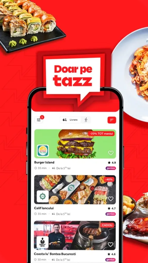 • Products from supermarket Tazz partners: Kaufland, Mega Image, Cora, Auchan, McDonald’s, Sensiblu, Decathlon.