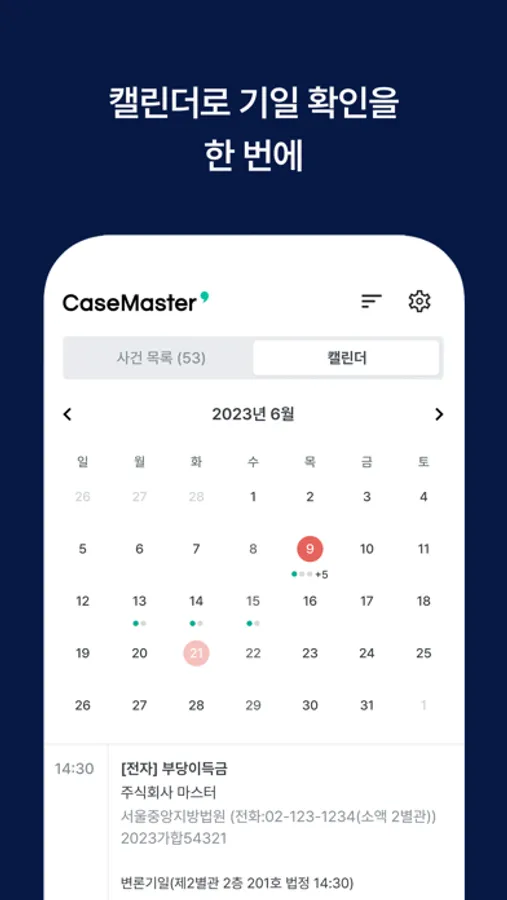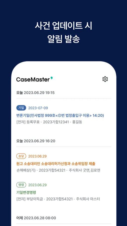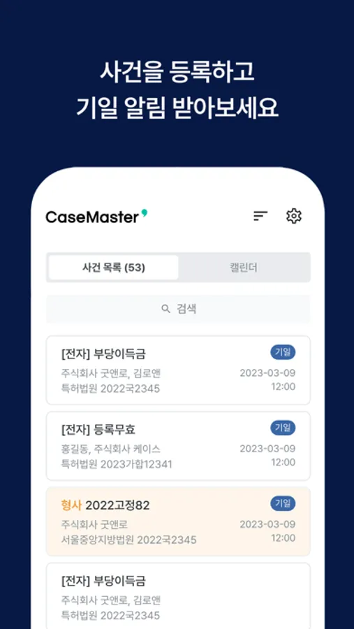 사건만 등록해두세요. 이후 진행상황 관리는 케이스마스터가 도와드립니다.
