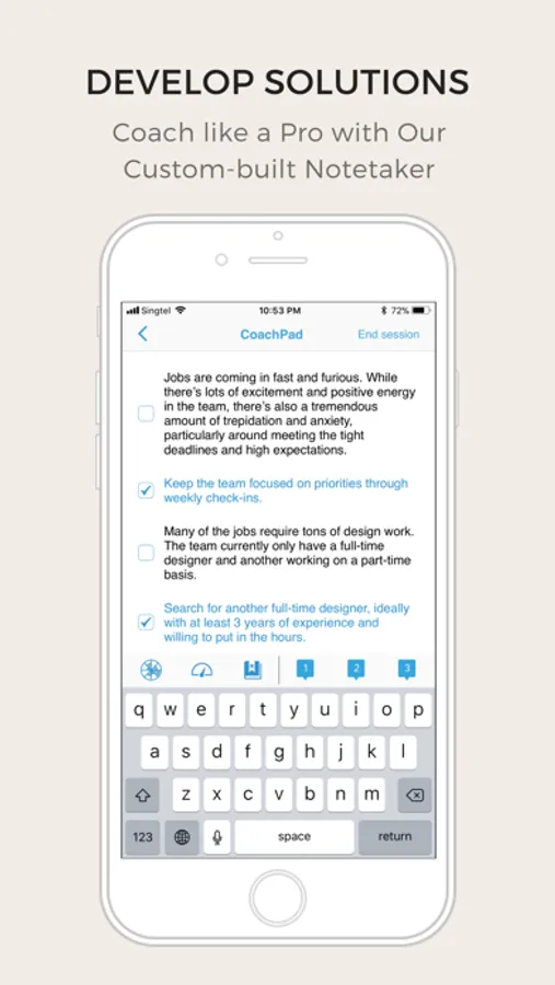 The MasterCoach App is a complimentary support tool for certified Enterprise Coaches and Enterprise Coach Trainers from the MasterCoach Institute. The App allows them to coach others to achieve their goals in 3 steps:
