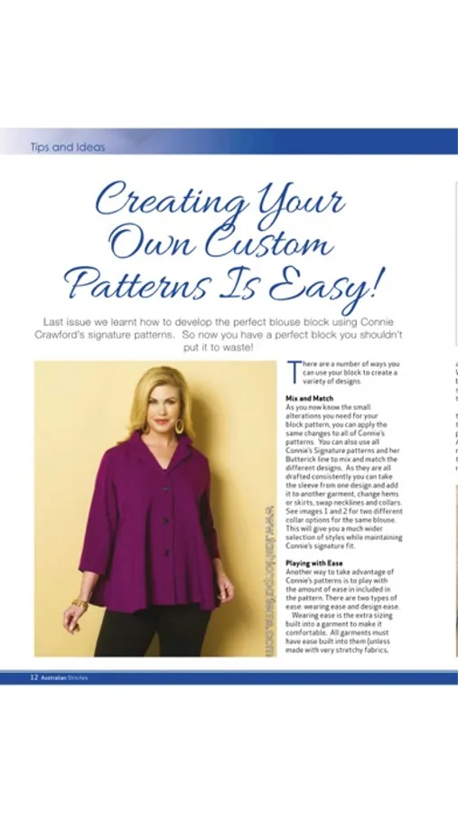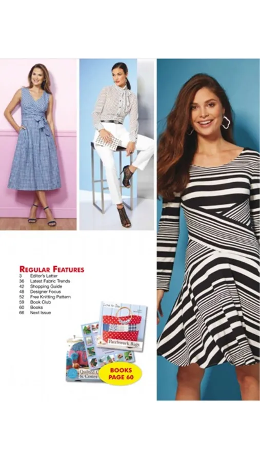 Australia’s leading dressmaking magazine is a favoured by all dressmakers in every age group. Fabulous garments, technical instructions and step x step photos help guide even the most novice sewer to complete perfect garments every time. All the latest patterns and fabrics are covered in every issue plus we trial patterns to give the lowdown on how to improve on each pattern’s instruction sheet. We showcase makeovers of real people, give wardrobe-planning advice and show the latest trends from the USA and Europe.