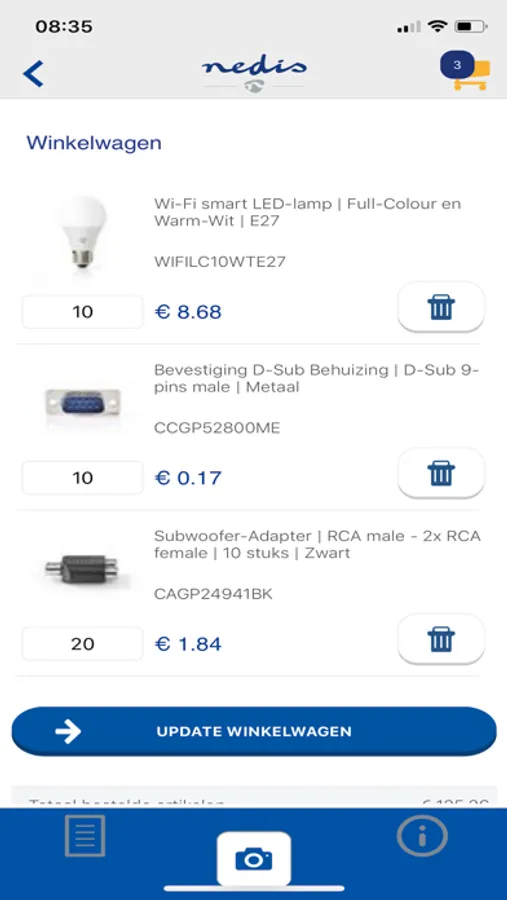 No more mistakes in copying the article number. Just scan the barcode and you will get to see the scanned article immediately. Go to your shopping basket for a total overview of your products.