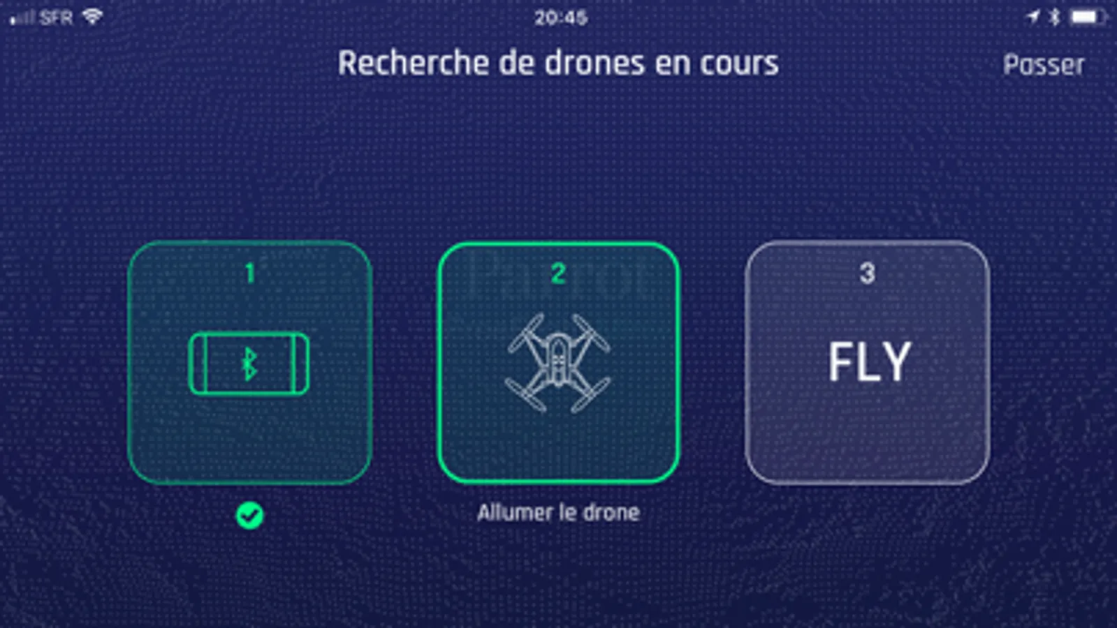 Simply turn on your drone, activate Bluetooth on your smartphone/tablet and open the application. Select your drone from the list that appears on the screen. Your drone will then connect and you are ready for take-off! If you’re using Mambo FPV, activate wifi on your iDevice and connect to your drone in the app.