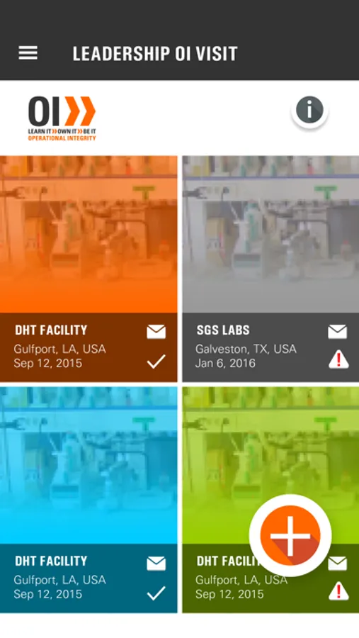 - Featuring big ORANGE PLUS button to create a New Visit record, the app guides you from start to end of the Leadership OI Visit.