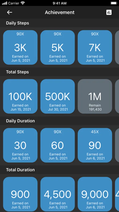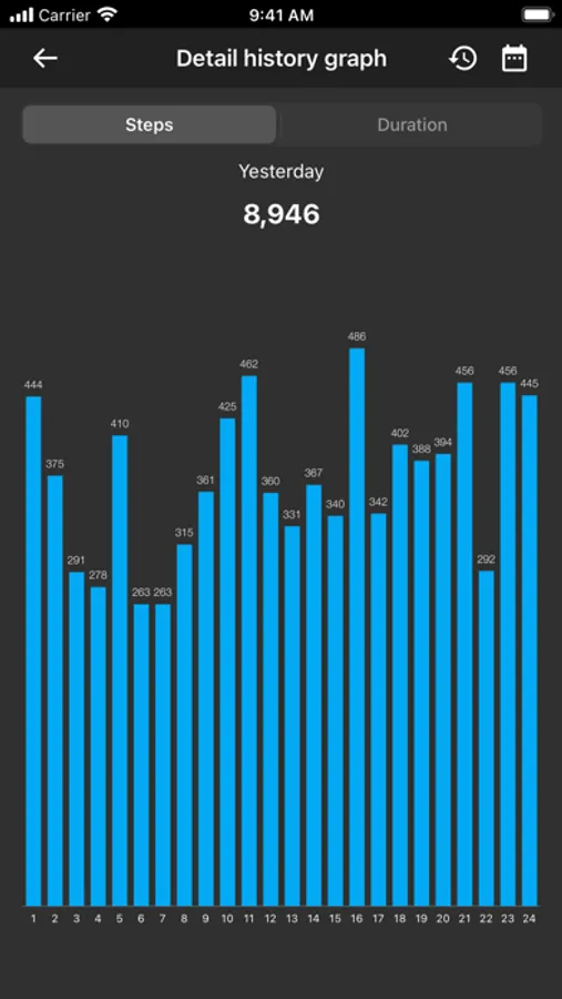 - Advanced graph and history for steps: yearly, monthly, daily and hourly (click the circle)