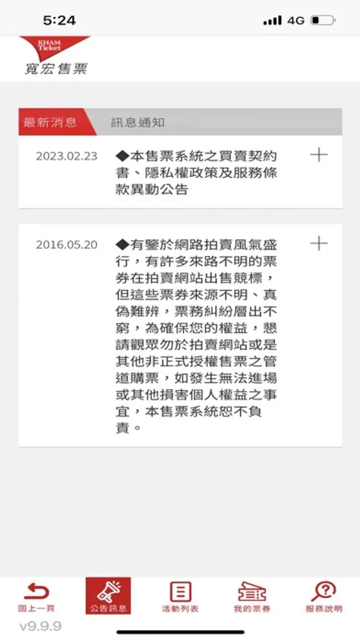 「寬宏售票APP」為寬宏售票系統全新推出的手機購票服務,不論您身在何處,隨時隨地都可以輕鬆購買寬宏售票代售的活動門票,選擇票券郵寄到府或便利商店取票,只要透過專屬APP,就能輕鬆快速直接以手機完成購票,更能及時掌握最新的活動訊息!!